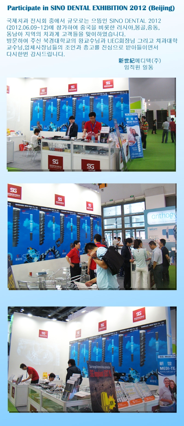 SG消息 Participate in Sino-Dental Exhibition 2012 (Beijing)登录. 日期 2012-06-28 |