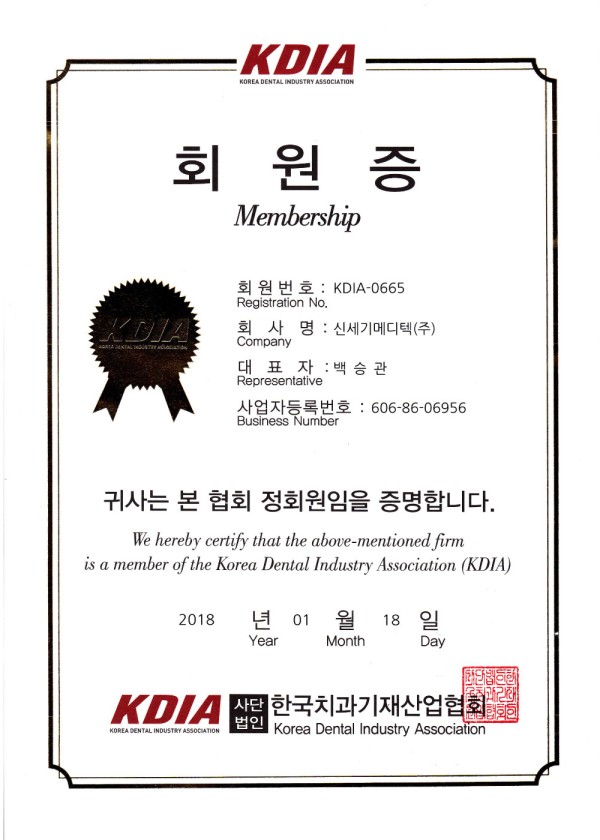 기타 Certificate of Membership by Korea Dental Industry Association_2018.01… 페이지 정보 작성자 신세기메디텍 댓글 0건 조회 26회 작성일 24-11-29 16:26 목록 본문 1 이전글Certificate of Membership by Korea International Trade Association_2019.10.08 24.11.29 댓글 0 댓글목록 등록된 댓글이 없습니다.