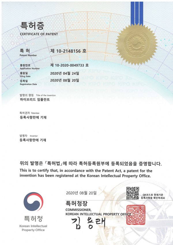 특허출원 Certificate of patent_No.10-2148156_2020.08.20